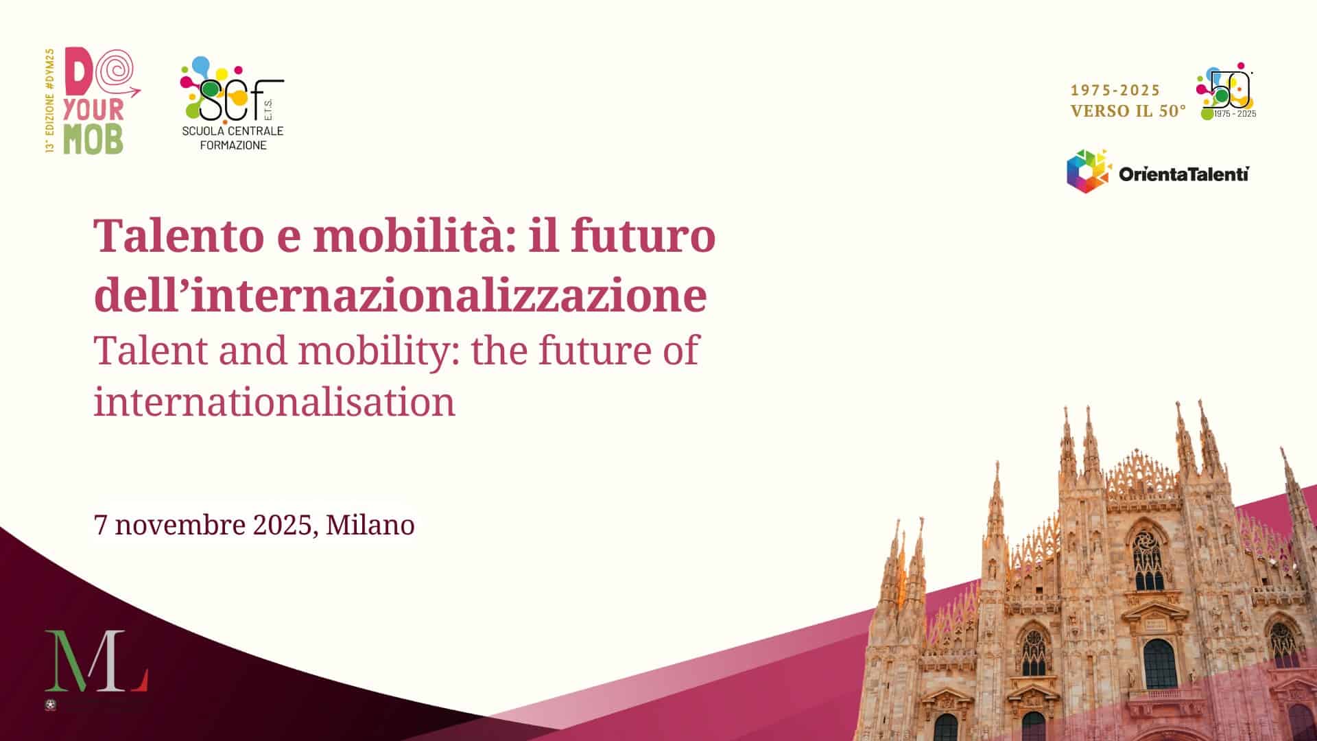 Scuola Centrale Formazione è lieta di invitarvi alla 13ª edizione di DO YOUR MOB, l’evento internazionale dedicato al futuro della mobilità per l’apprendimento, che si inserisce nel quadro delle celebrazioni per il nostro 50° Anniversario (1975-2025).